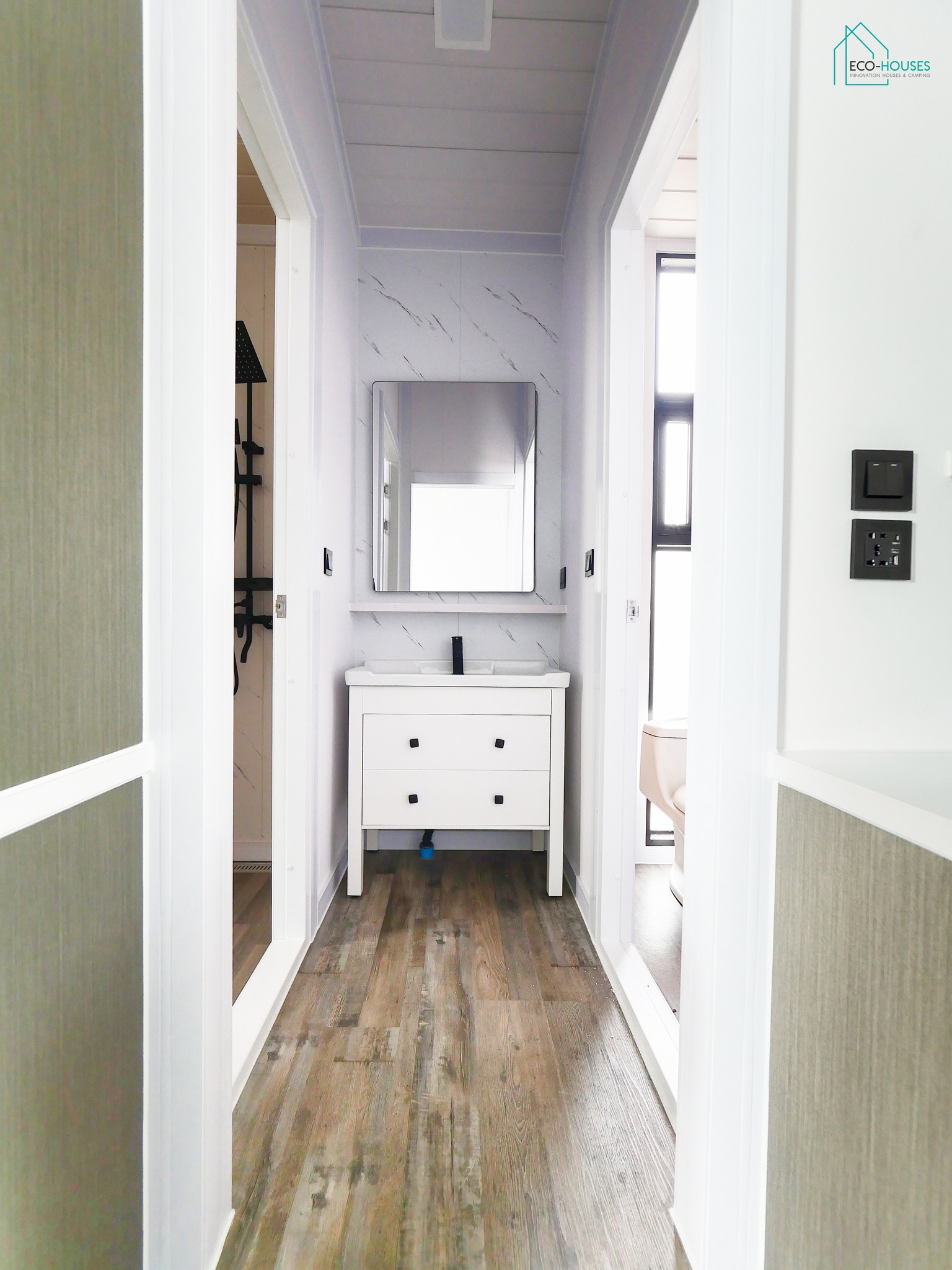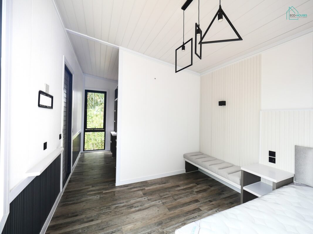 บ้านน็อคดาวน์ Type BBM ขนาด 3.4 x 7 เมตร พื้นที่ใช้สอย 23.8 ตร.ม แบ่งพื้นที่ภายในได้อย่างลงตัว ตกแต่งภายในบิ้วอินทั้งหลัง เชื่อมต่อทุกฟังก์ชั่น ตอบรับชีวิตยุคใหม่
